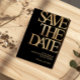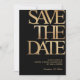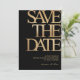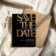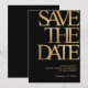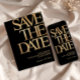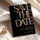 Make a bold and sophisticated statement with this black and gold save the date card, designed for a stylish and memorable celebration. Featuring large modern typography with a luxurious gold look on a deep black background, this design is perfect for an upscale event.
