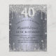 A modern, stylish and glamorous invitation for a 40th birthday party. A faux silver looking background, decorated with glitter dust. Personalize and add your name and party details. Number 40 is written with a balloon style font, script.