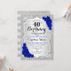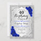 40th Birthday - Silver Stripes Royal Blue Roses Invitation