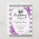 40th Birthday - Silver White Stripes Purple Roses Invitation