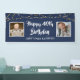Celebrate a 40th (or any age) birthday with this editable royal blue banner sign featuring two photos (perhaps Then and Now pictures) of him or her, the suggested title HAPPY 40TH BIRTHDAY in your choice of font styles and colors (shown in a brush stroke font in white), personalized with their name or your custom text and accented with gold and white string lights. Make changes in EDIT. BANNER OPTIONS: The sample is shown in the 2.5x6' size; other sizes are available on the ordering page as well as the option of transferring the design to a foam board, poster, tapestry or other product or have the designer convert it to a DIGITAL DOWNLOAD file BEFORE ordering to print locally. ASSISTANCE: For help with design modification or personalization, color change, resizing, transferring the design to another product or if you would like coordinating items, contact the designer BEFORE ordering via Zazzle Chat or email makeitaboutyoustore@gmail.com.