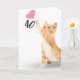 Gold tabby cat with pink heart balloon for 40th birthday on white background.