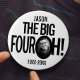 Fun mono black and white 40th Birthday party photo and name pin button badge. A great idea for adding some fun to a fortieth birthday party. Personalize with your own name and birth year to the current year, sample reads Jason the big four oh! Other matching items are available. Design by Sarah Trett for www.mylittleeden.com on Zazzle.