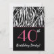 40th Birthday Zebra Stripes Black White with Pink Invitation