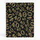 The all-over print for this binder is a digital number pattern created with a gold number 40 repeated and scattered randomly on a black background with a gold plaque for your text.