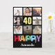 40th Happy Birthday Photo Collage Modern Black Card with personalized name. For further customization, please click the "Customize it" button and use our design tool to modify this template.