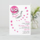 40th Pink Happy Birthday Custom Name Invitation