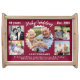 This elegant Ruby Wedding serving tray makes an ideal gift for a couple on their 40th wedding anniversary. With an elegant ruby red background, the tray features a custom photo collage of five of your favorite pictures. Personalize the tray with your own heartfelt message to the couple, along with their 'established' wedding year. This custom keepsake tray makes a unique present to treasure for years to come.