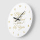 Great price for a very nice product. Arrived a day early - unheard of these days. The outside gold area has a little more orange tone to it than shown in the picture. Great packing so product can't get damaged. I used the same packing to forward the clock to my brother and sister-on-law for the 50th wedding anniversary. Printing was just as expected - lovely!