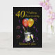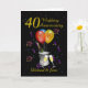 A stylish 40th wedding Anniversary card. This bright colored card features a bottle of fizz, ice bucket flute glasses, balloons and confetti all on a black background with gold colored text. A lovely card to give to family and friends to give congratulations to the happy couple on their 40th wedding anniversary. Can be customize for any year and title then personalize by amending the names and the message inside which currently reads "Happy Anniversary Congratulations on completing 40 years of love together. What a lovely couple you make!.". Background color can be changed if needed, just click on the personalize further button.