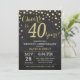 40th Wedding Anniversary Chalkboard Black and Gold Invitation