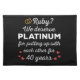 'Ruby? We deserve Platinum for putting up with each other for 40 Years' quote for a couple who got married 40 years ago or a couple renewing wedding vows on their ruby anniversary.