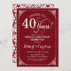 40th Wedding Anniversary - Ruby Red White Damask Invitation