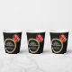 Red and gold ring on a black background modern fun fact and wedding anniversary party paper cups. Personalize these anniversary cups with your own name and fun facts about your couple. Other matching items are also available. © Original graphic ring design by Sarah Trett for www.mylittleeden.com and www.mylittleedenweddings.com on Zazzle.