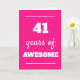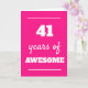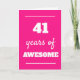 Modern pink 41 years of awesome card for her 41st birthday, which you can easily personalize the inside card message if wanted.