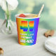 This vibrant and exciting birthday paper cup design features a large number “41” with a colorful rainbow spectrum inspired gradient pattern, along with the message “HAPPY 41st BIRTHDAY,”, and a personalized name. The background also features a joyful multicolored rainbow spectrum inspired gradient pattern. Birthday themed paper cups like this might be used at a birthday party celebrating somebody’s 41st birthday. [~Z0000576]