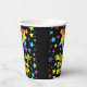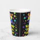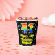 This exciting and joyful birthday-themed paper cup design features a large number “41” having a rainbow spectrum gradient inspired pattern. It also features the message “Happy 41st Birthday,”, and a customizable name. The background features a multicolored pattern having many star shapes with different sizes and colors. Colorful, vibrant paper cups like this might be fun to have at a birthday party/celebration being held to celebrate somebody’s 41st birthday. [~Z0000540]