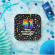 This exciting and vibrant birthday themed paper plate design features a large number “41” with a rainbow spectrum gradient inspired pattern, along with the message “Happy 41st Birthday,”, and a custom name. The background features a multicolored pattern having many star shapes with different sizes and colors. Fun paper plates like this might be fun to use at a party in honor of somebody’s forty first birthday. [~Z0000582]