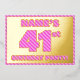 The front of this bold and fun forty-first birthday celebration/party foil invitation card features a custom name, a large number “41st”, the message “BIRTHDAY PARTY!”, and a border, all featuring a feminine light pink and dark pink stripes pattern. The back features personalized details about the event, such as the date, time, place, and any other information that may be useful. Customizable invitations like these might be used to invite guests/attendees to a birthday gathering/party being held to honor somebody’s 41st birthday. [~Z0000597]