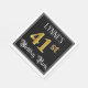 This elegant and opulent birthday themed paper napkin design features a personalized name and the message “41st Birthday Party”. The large number “41st” has a faux/imitation gold-inspired coloring pattern, and the words “Birthday Party” are in luxurious script-style text. The background is colored black by default (although it can be customized). Luxurious, fancy paper napkins like this might be useful at a birthday party being held to celebrate somebody’s 41st birthday. [~Z0000565]