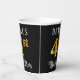 This luxurious and fancy birthday paper cup design features an editable name and the message “41st Birthday Party”. The large number “41st” has an imitation/faux gold-inspired coloring pattern, the words “Birthday Party” are in ornate script-style text, and the background is colored black by default (although it can be customized). Opulent, elegant paper cups like this might be useful at a birthday celebration being held in celebration of somebody’s forty first birthday. [~Z0000567]