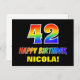 The front of this fun, cheerful, and colorful birthday themed postcard design features a large number "42" and the message "HAPPY BIRTHDAY,", both colored with a rainbow spectrum gradient inspired pattern, along with a bold yellow editable recipient name. The front also features a simple, minimalist, black colored background. The back of the postcard has a personalized birthday greeting message, or could perhaps be cleared and left blank if a message is to be written by hand instead. An exciting personalized birthday postcard like this might be a fun way to celebrate somebody’s forty second birthday. [~Z0000474]