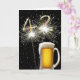 Party sparklers with gold confetti and a mug of beer for 42nd birthday.