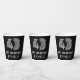 This 1920s-1930s style inspired and vintage look birthday themed paper cup design features a large art deco inspired appearance number “43”, in addition to the birthday greeting message “Happy 43rd Birthday,” and a personalized name. It also has a black-colored background. Paper cups like this might be used at a party held in celebration of somebody’s 43rd birthday. [~Z0000542]