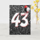 Red, white and black balloons on black glitter background for 43rd birthday.