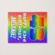 This vibrant and exciting birthday themed jigsaw puzzle design features a large number “43” with a colorful rainbow spectrum inspired gradient pattern, along with the message “HAPPY 43rd BIRTHDAY,”, and a customizable recipient name. The background also features a joyful multicolored rainbow spectrum inspired gradient pattern. A fun, customized birthday puzzle like this might be used to acknowledge somebody’s forty-third birthday. [~Z0000569]