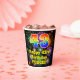 This cheerful and fun birthday paper cup design features a large number “43” with a rainbow spectrum gradient inspired pattern, along with the message “Happy 43rd Birthday,”, and a customizable name. The background features a colorful pattern inspired by the look of bursting celebratory fireworks. Colorful, vibrant paper cups like this might be fun to have at a birthday party being held to celebrate somebody’s 43rd birthday. [~Z0000539]
