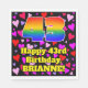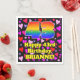 This happy and fun birthday paper napkin design features a large number “43” having a rainbow spectrum gradient inspired pattern. It also features the message “Happy 43rd Birthday,”, and a personalized name. The background features a pattern of purple, red, and pink heart shapes of various sizes. Fun, upbeat paper napkins like this might be fun to use at a birthday celebration being held to celebrate somebody’s forty third birthday. [~Z0000550]
