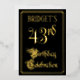 The front of this ornate, luxurious, foil forty-third birthday party invitation design features the message “43rd Birthday Celebration” in elegant script-style text. It also has a personalized name. The background of the front is colored black by default (although it can be customized to a different color). The back features personalized details about the event, such as the date, time, location, and any other relevant information. Opulent, elegant, editable invitations like these might be used to invite guests to a birthday celebration/party being held to honor somebody’s forty third birthday. [~Z0000589]