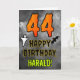 The front of this scary and spooky Hallowe’en themed birthday greeting card design features a large number “44”, along with the message “HAPPY BIRTHDAY,”, and an editable name. There are also depictions of a bat and a ghost on the front. The inside features a custom birthday greeting message, or could perhaps be cleared and left blank if a message is to be written by hand instead. A personalized birthday card like this might be a fun way to acknowledge somebody’s forty fourth birthday that also falls on October 31st (Halloween). [~Z0000547]