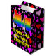 This colorful and joyful birthday themed giftbag design features a large number “44” with a rainbow spectrum gradient inspired pattern, along with the message “Happy 44th Birthday,”, and a personalized name. The background features a pattern of heart shapes with colors like purple, red, and pink. A birthday themed gift-bag like this might be used when giving a gift or present in celebration of somebody’s forty fourth birthday. [~Z0000551]