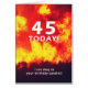 A funny birthday cake for someone who is turning 45. A forest fire burning behind some buildings, and the slogan "I see they lit your birthday candles!"