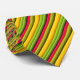 A tie with an attractive 45 degree color stripe design in shades of green amber and red with a 3d effect.