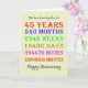 45th anniversary card counting down the years, days, months, hours, and minutes that you have been married. Funny, but with a romantic verse inside. A card to give pause for thought! Leap years have been taken into account!