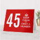 Keep Calm it's only a number 45th Birthday big greeting card. Funny Keep Calm and Carry On parody for 45 year old. Make your own age specific Keepcalm spoof with custom number. Cute forty five Birthday gag gift idea for men and women. Surprise your over the hill dad, mom, husband, wife, uncle, aunt, grandpa, grandma etc. Hilarious age joke for forty fifth Birthday celebration. Vintage slogan with custom background color.