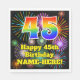 45th Birthday: Fun Fireworks Pattern + Rainbow 45 Napkins