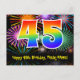 45th Birthday – Fun Fireworks Pattern + Rainbow 45 Postcard