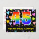 45th Birthday: Fun Hearts Pattern, Rainbow 45 Postcard