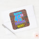 This fun birthday square sticker design features the message “HAPPY 45TH BIRTHDAY,” having a vibrant, colorful, graffiti and urban street art inspired appearance, in addition to an editable recipient name. The background features a pattern inspired by the look of a brick wall. Fun, personalized stickers like this might be given as a birthday gift, or used while wrapping gifts/presents, or perhaps used as birthday party decorations when celebrating somebody’s 45th birthday. [~Z0000535]