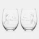45th Sapphire Wedding Anniversary Line Art Couple Stemless Wine Glass