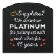 'Sapphire? We deserve Platinum for putting up with each other for 45 Years' quote for a couple who got married 45 years ago or a couple renewing wedding vows on their sapphire anniversary.