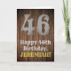 This western inspired and country inspired birthday greeting card design features a large rustic inspired number "46", the message "Happy 46th Birthday,", a custom name, and a faux/imitation wood grain inspired style pattern background. The inside has a custom birthday greeting message, or could perhaps be cleared and left blank if a message is to be written by hand instead. A personalized birthday greeting card like this might be a fun way to send a birthday greeting message to somebody who is celebrating their forty-sixth birthday. [~Z0000469]
