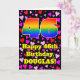 The front of this fun and colorful birthday greeting card design features a large number “46” having a rainbow spectrum gradient inspired pattern. It also features the message “Happy 46th Birthday,”, and a custom name. The background of the front features a pattern of pink, red, and purple heart shapes of various sizes. The inside has a customized birthday greeting message, or could perhaps be cleared and left blank if a message is to be written by hand instead. A cheerful, editable birthday greeting card like this might be a fun way to deliver birthday greetings to somebody who is celebrating their forty-sixth birthday. [~Z0000551]