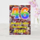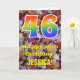 The front of this colorful, autumn-themed, and nature-inspired birthday greeting card design features a large number "46" with a rainbow spectrum gradient inspired pattern, along with the message "Happy 46th Birthday,", and a personalized name. The background of the front of the card features a rustic fallen autumn leaves pattern. The inside features a personalized birthday greeting message, or could perhaps be cleared and left blank if a message is to be written by hand instead. A customizable birthday card like this might be a fun way to send birthday wishes to somebody who is celebrating their forty sixth birthday. [~Z0000384]