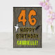The front of this scary and spooky Hallowe'en birthday themed greeting card design features a large number "46" and the message "HAPPY BIRTHDAY,", plus a customizable name. There are also depictions of a ghost and a bat on the front. The inside features a customizable birthday greeting message, or could perhaps be cleared and left blank if a message is to be written by hand instead. A customizable birthday card like this might be a fun way to send birthday wishes to somebody who is celebrating their forty sixth birthday and who was also born on October 31st (Halloween). [~Z0000410]