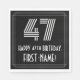 This vintage appearance birthday themed paper napkin design features a large Art Deco look inspired number "47", the message "HAPPY 47th BIRTHDAY,", a personalized name, and a border pattern consisting of lines. Fun, customizable paper napkins like this might be used at a party being held to celebrate somebody’s forty seventh birthday. [~Z0000395]